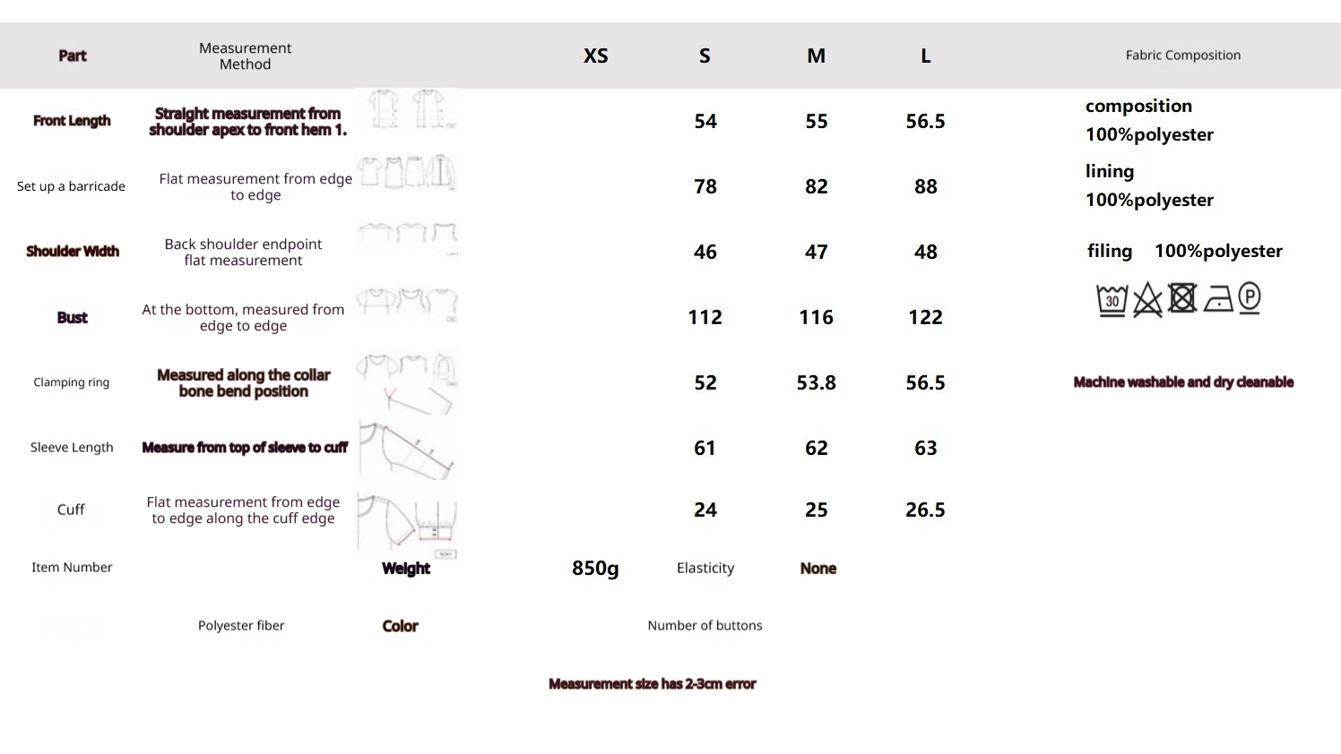 Main Fabric Composition: Polyester